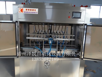 1.該機為全自動智能化直線式灌裝機,